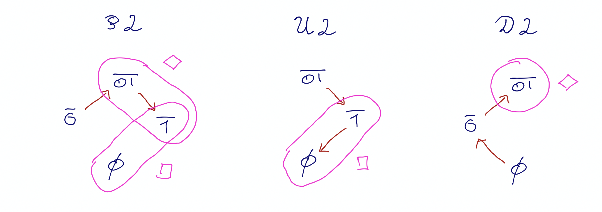 We summarise the situation with the following picture, depicting , , and the subsets that correspond to and :
